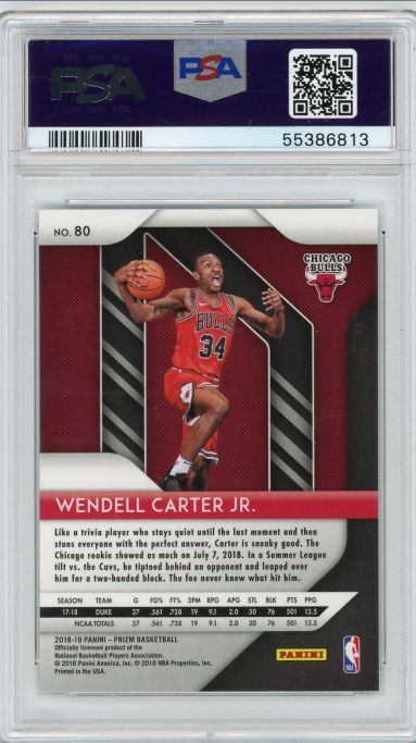 2018-19 Panini Prizm Basketball Wendell Carter JR Rookie #80 PSA 10 GEM