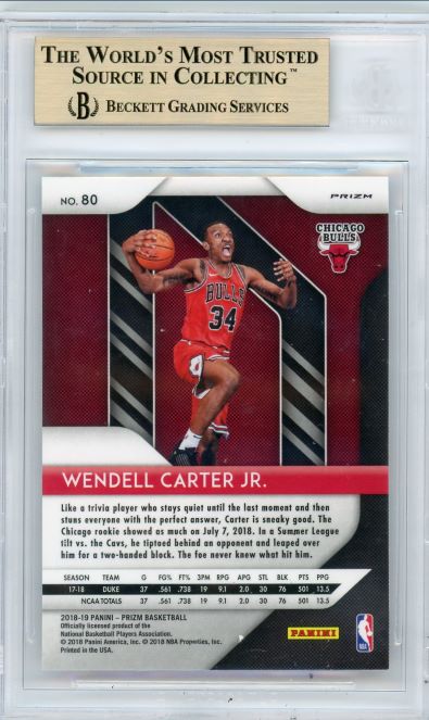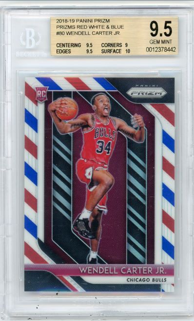 2018 Panini Prizm Red/White/Blue Wendell Carter Jr Rookie #80 BGS 9.5