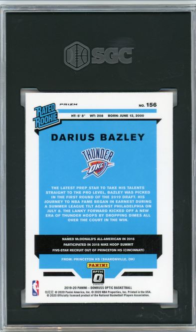 2019-20 Donruss Optic Pink Hyper Darius Bazley Rated Rookie #156 SGC 9