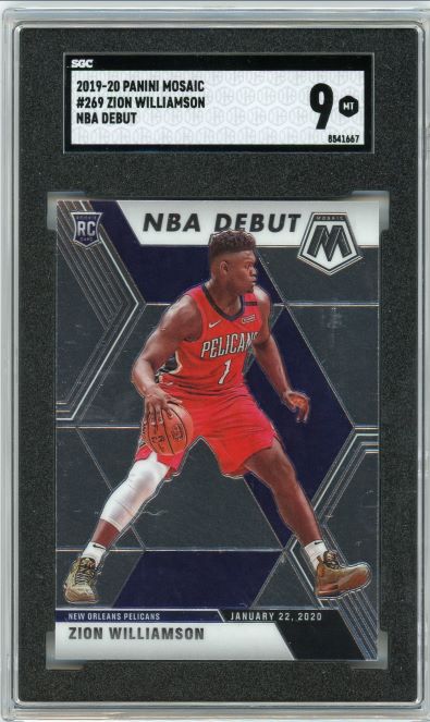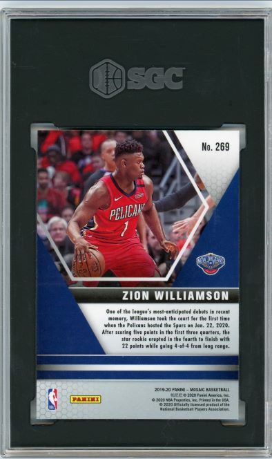2019-20 Panini Mosaic #269 Zion Williamson NBA DEBUT RC SGC 9 Pelicans