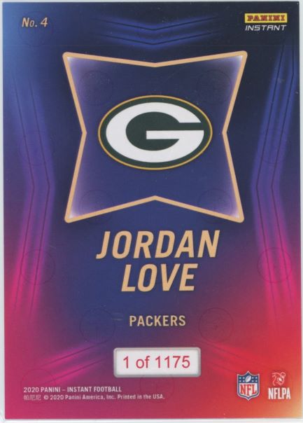 2020 Panini Instant NFL Draft Night RC JORDAN LOVE ROOKIE PACKERS UTAH STATE