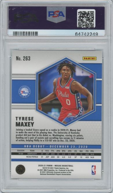 2020 Panini Mosaic Tyrese Maxey Silver Rookie #263 PSA 10 Philadelphia 76ers