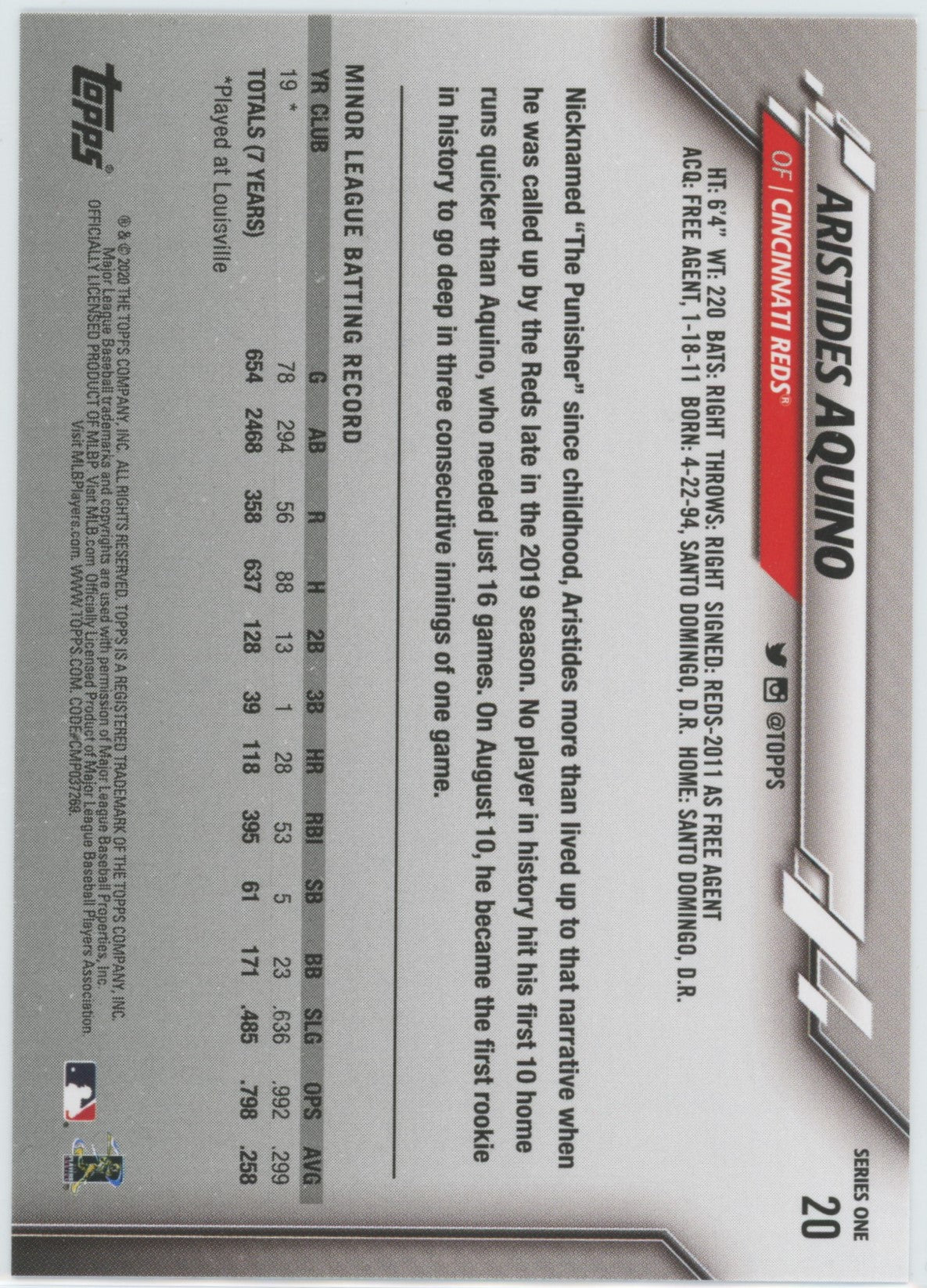 2020 Topps Aristides Aquino RC - Cincinnati Reds Rookie Card #20