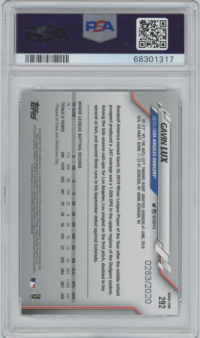 2020 Topps Gavin Lux Gold Rookie #292 #283/2020 PSA 6 Dodgers