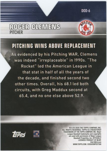 2020 TOPPS SERIES 1 INSERT DECADE OF DOMINANCE DIECUT ERROR ROGER CLEMENS DOd-6