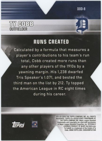 2020 Topps Ty Cobb Decade of Dominance Diecut #DOD-8