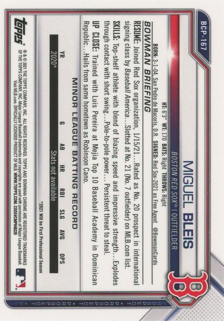 2021 Bowman Chrome Miguel Bleis Mojo Refractor 1st Bowman #BCP-167 Red Sox