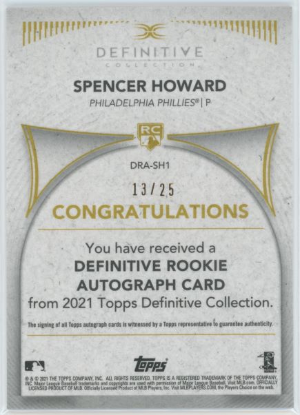 2021 Topps Definitive Green SPENCER HOWARD #/25 On-Card RC Auto Phillies