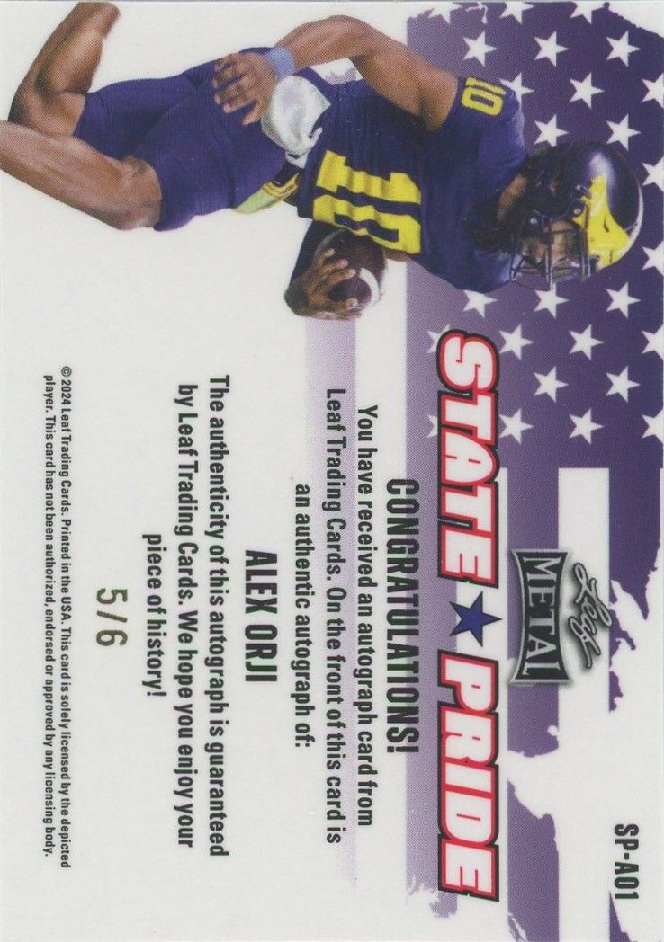 Alex Orji 2024 Leaf Metal State Pride Auto #5/6 #SP-A01