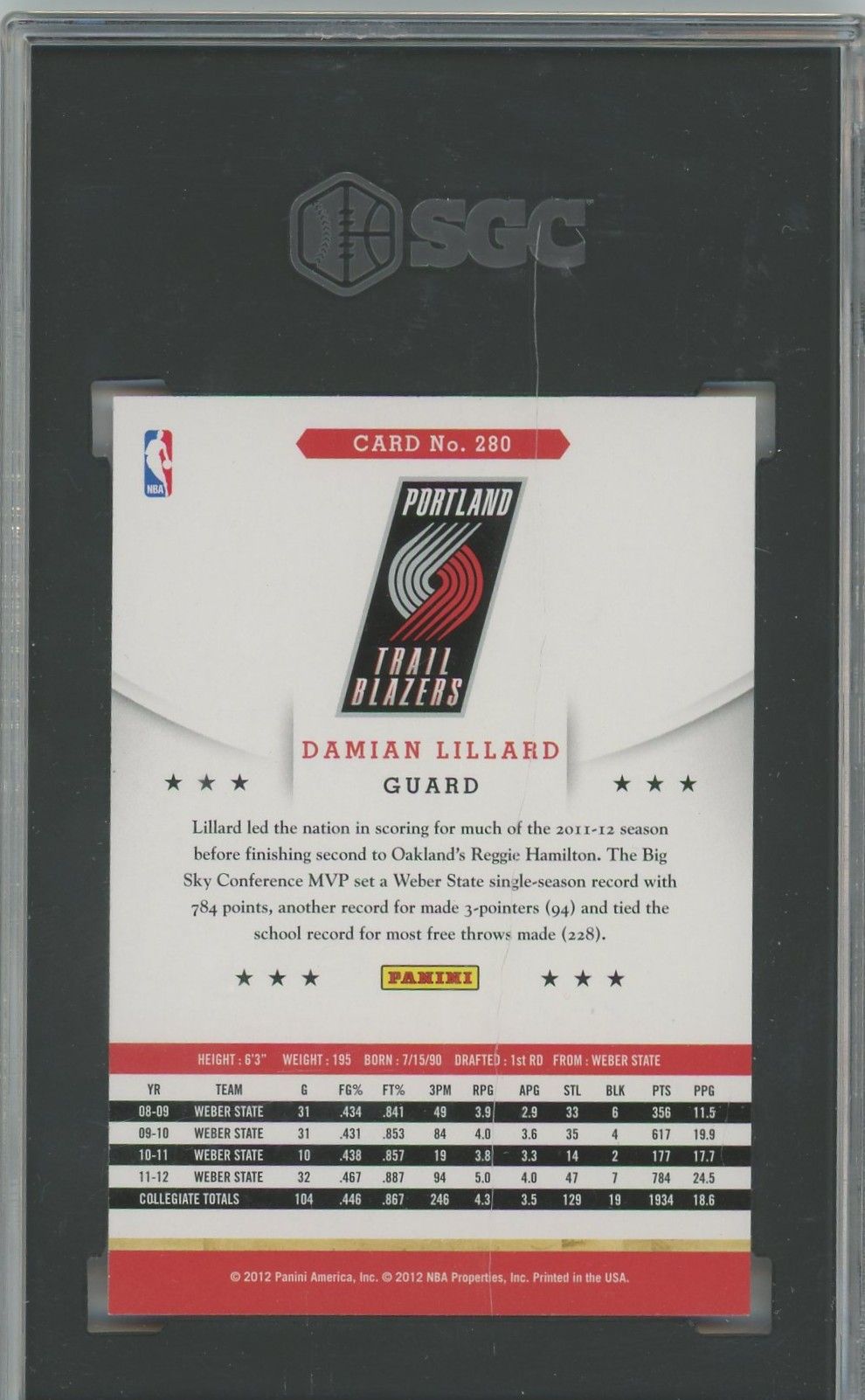 Damien Lillard 2012-13 Hoops Rookie Rc SGC 10 #280 Trailblazers