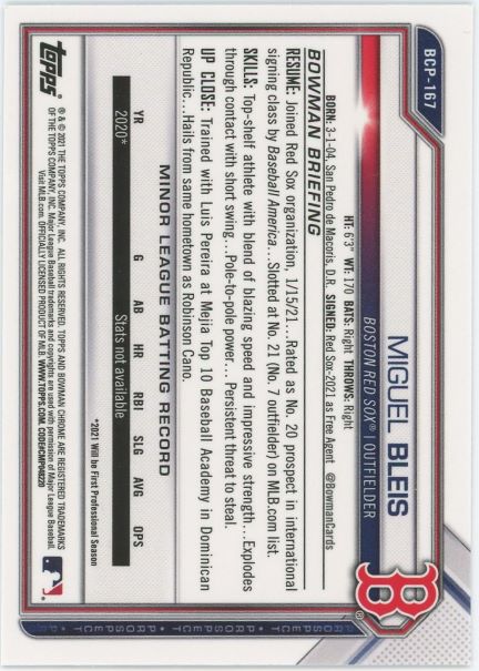 2021 Bowman Chrome Miguel Bleis 1st Bowman Mojo #BCP-167 Red Sox